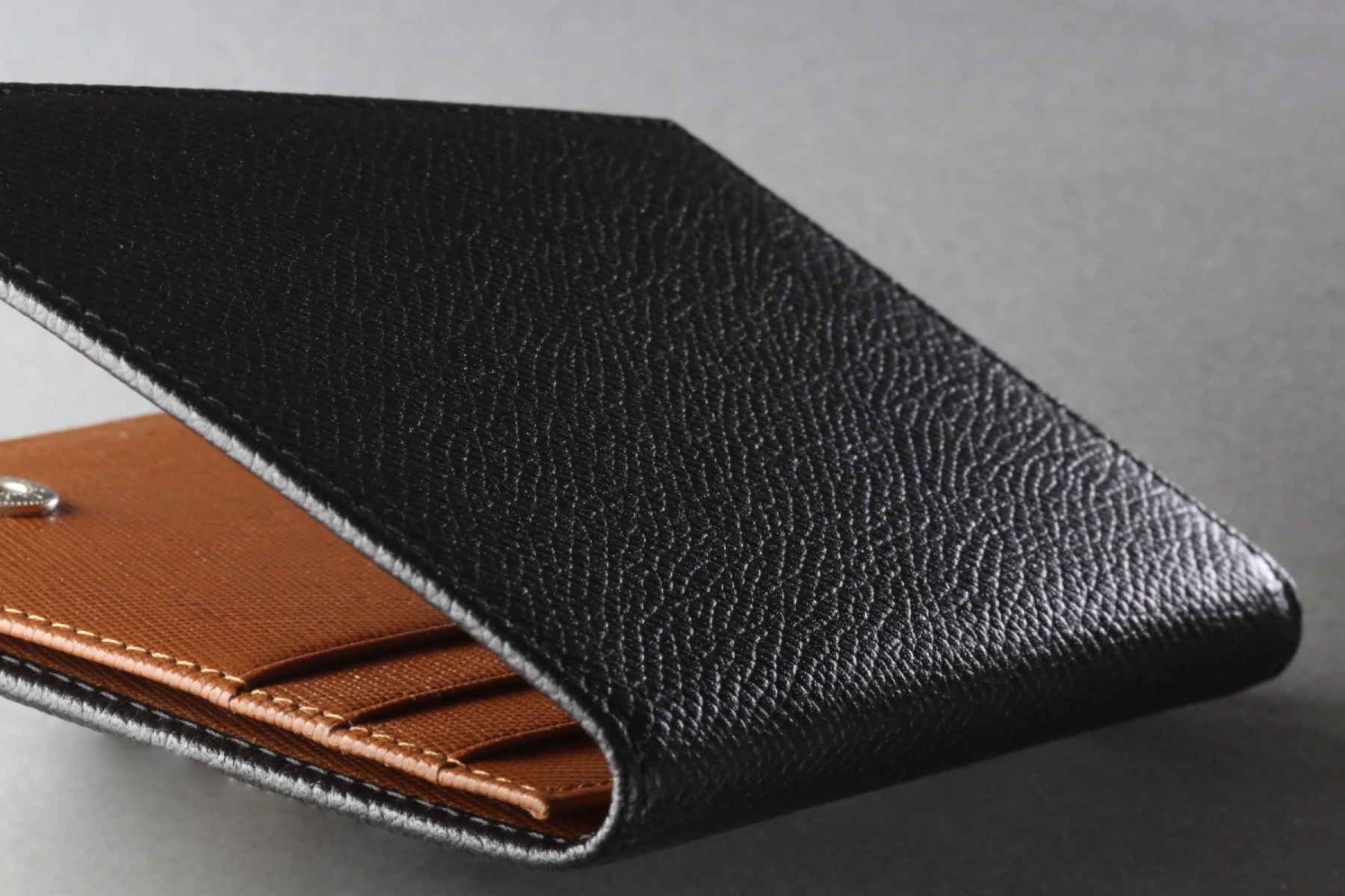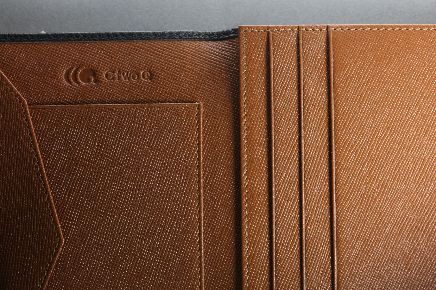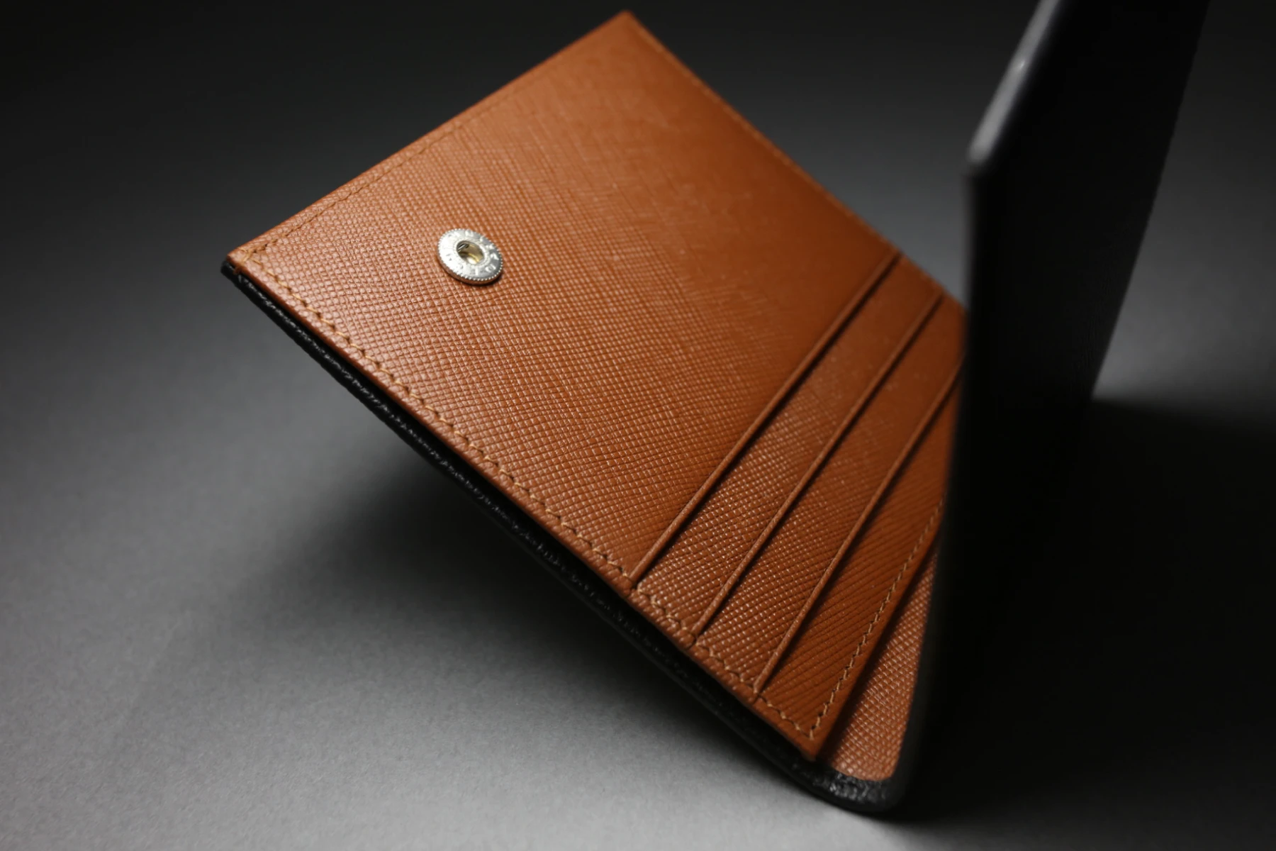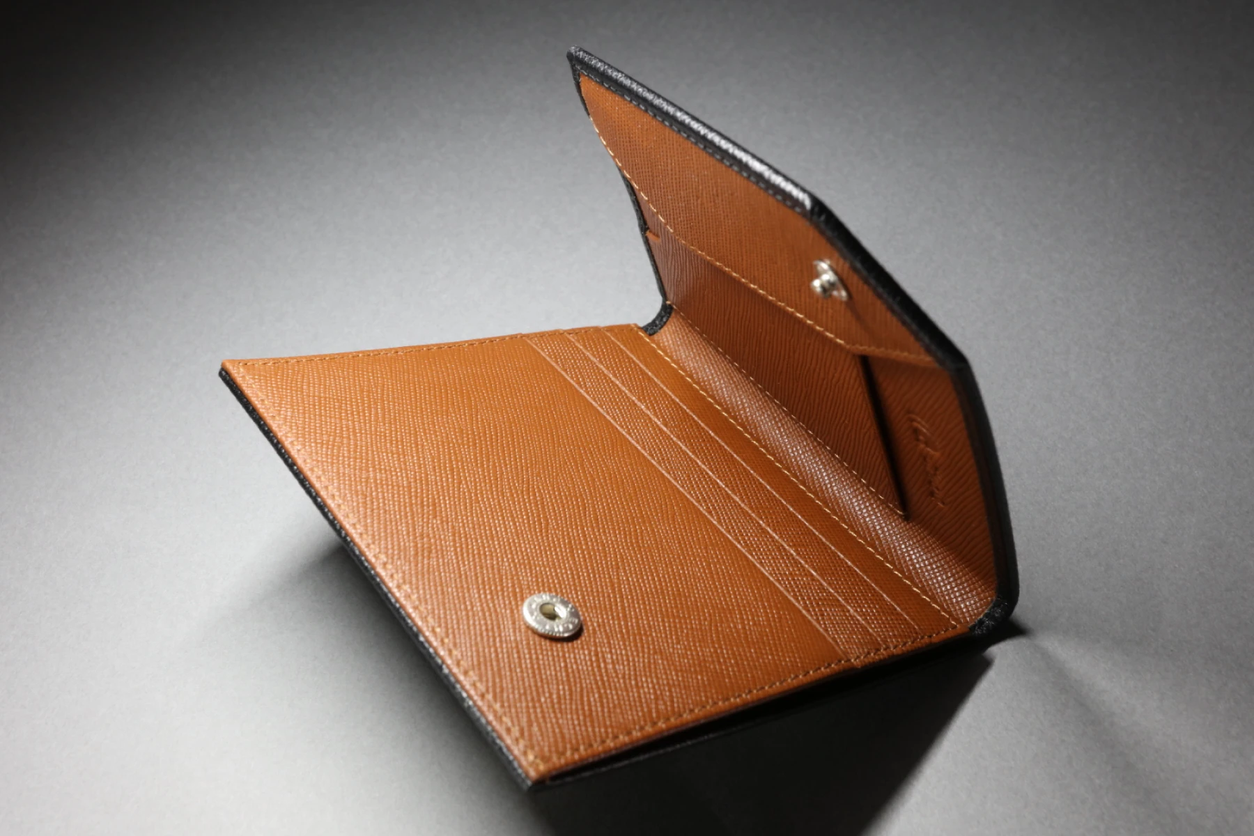 開いたときの驚きの薄さは、革パーツ一点一点の厚さを1mm以下のレベルで何度となく調整した証。もちろん、耐久性、強靭性、柔軟性も十分です。
